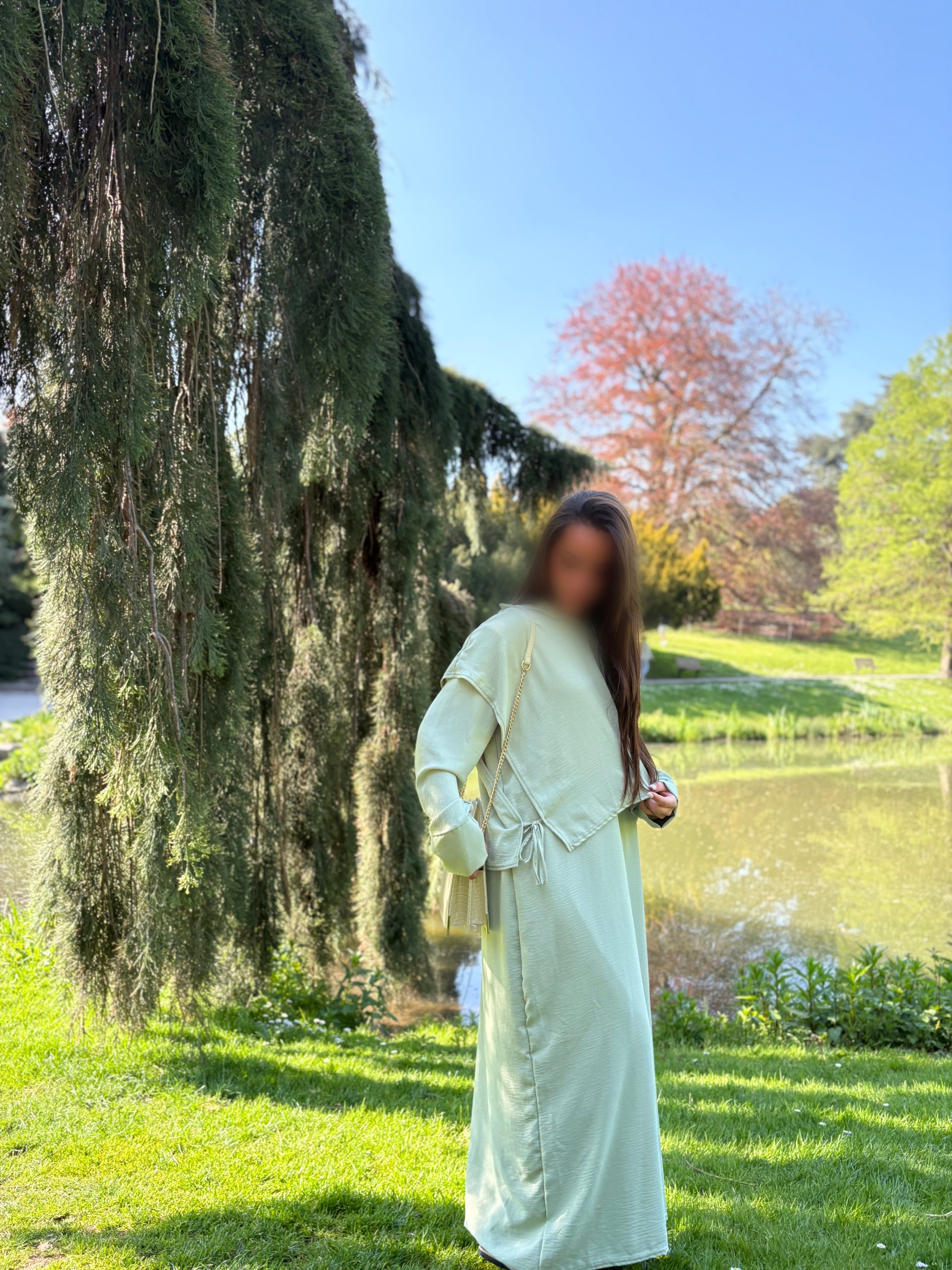L’Ensemble Mao est composé d’une robe et d’un top assorti, parfait pour les beaux jours de printemps et d’été. Léger et élégant.
